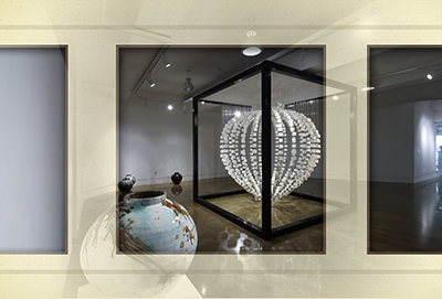 ‘큐브 속 항아리’는 달항아리의 소박한 균형을 백자 큐브의 적층 구조로 번역한 설치로, 비움과 채움의 긴장을 공간 속에서 체험하게 한다. 관람 각도와 빛에 따라 형상은 서서히 응축되어 웅장한 윤곽을 드러내며, 전통이 현재의 감각과 만나는 순간을 생성한다.