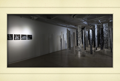 작업의 전체 분위기를 형성하는 검은(玄) 바탕은 어떤 형태도, 어떤 소리도 없는 적요(寂寥)의 상징으로서, 시공간의 깊이를 사유하게 한다. 그 위에 자개편처럼 빛나는 잎과 흰 점들은 우리가 놓치고 있을지도 모르는 순간의 숨결을 상징한다.