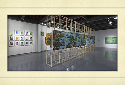 임현정의 그림은 풍경의 형태를 띠고 있지만 실제의 장소라기보다 마음속에만 존재하는 장면들입니다. 현실과 상상 사이를 오가며 관객은 그림 속을 여행하듯 걷게 됩니다.